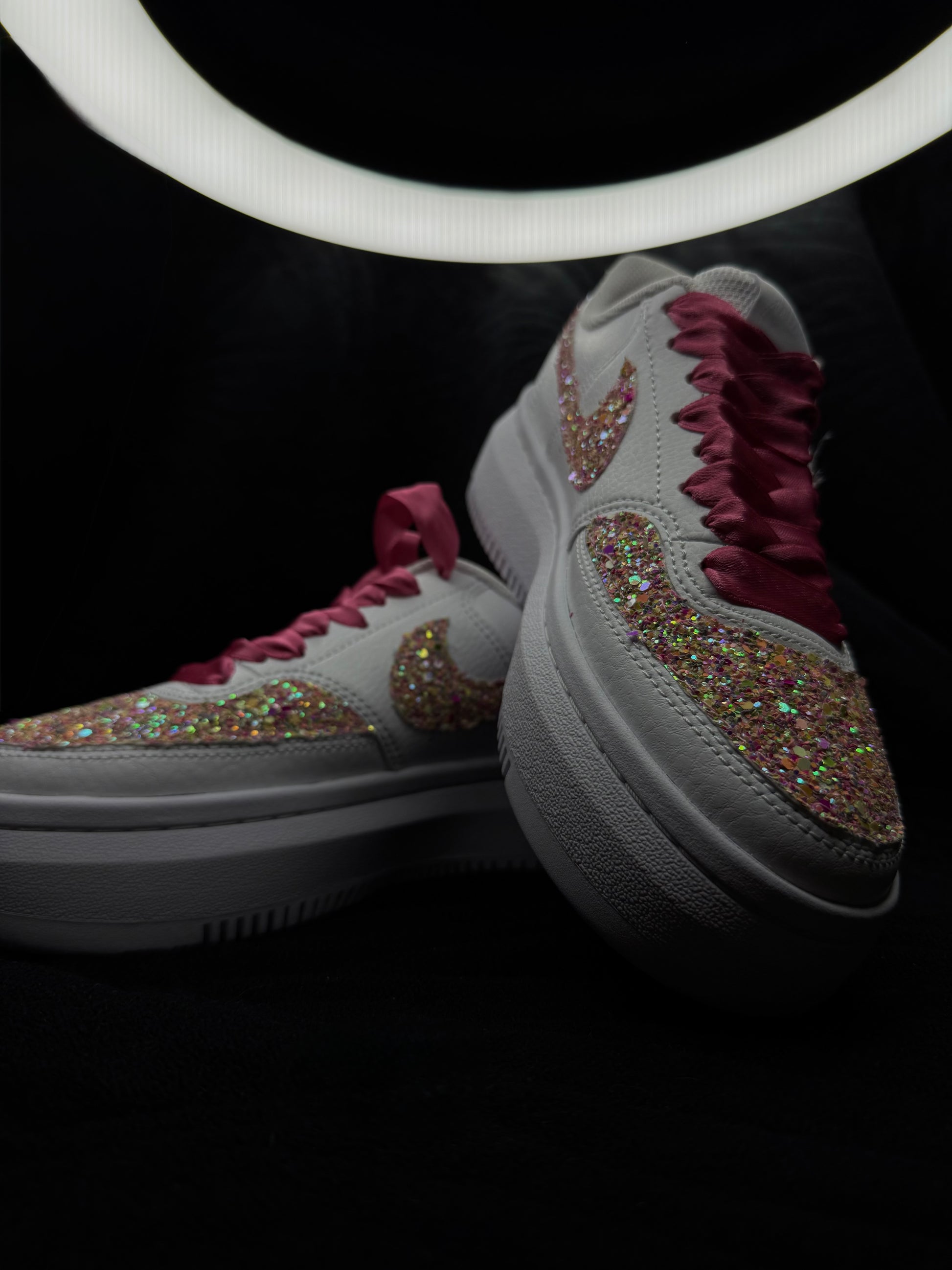 Nike v žiarivej striebornej farbe je dokonalou zmesou kreativity a minimalizmu. Swoosh je pokrytý trblietkami.